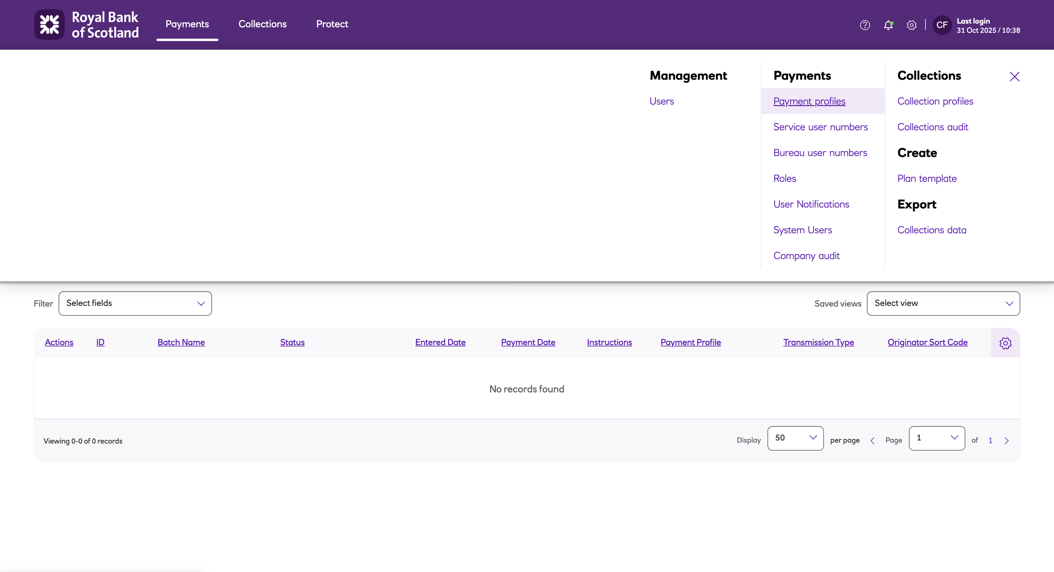 From the settings menu ('cog' icon) select Payment profiles.