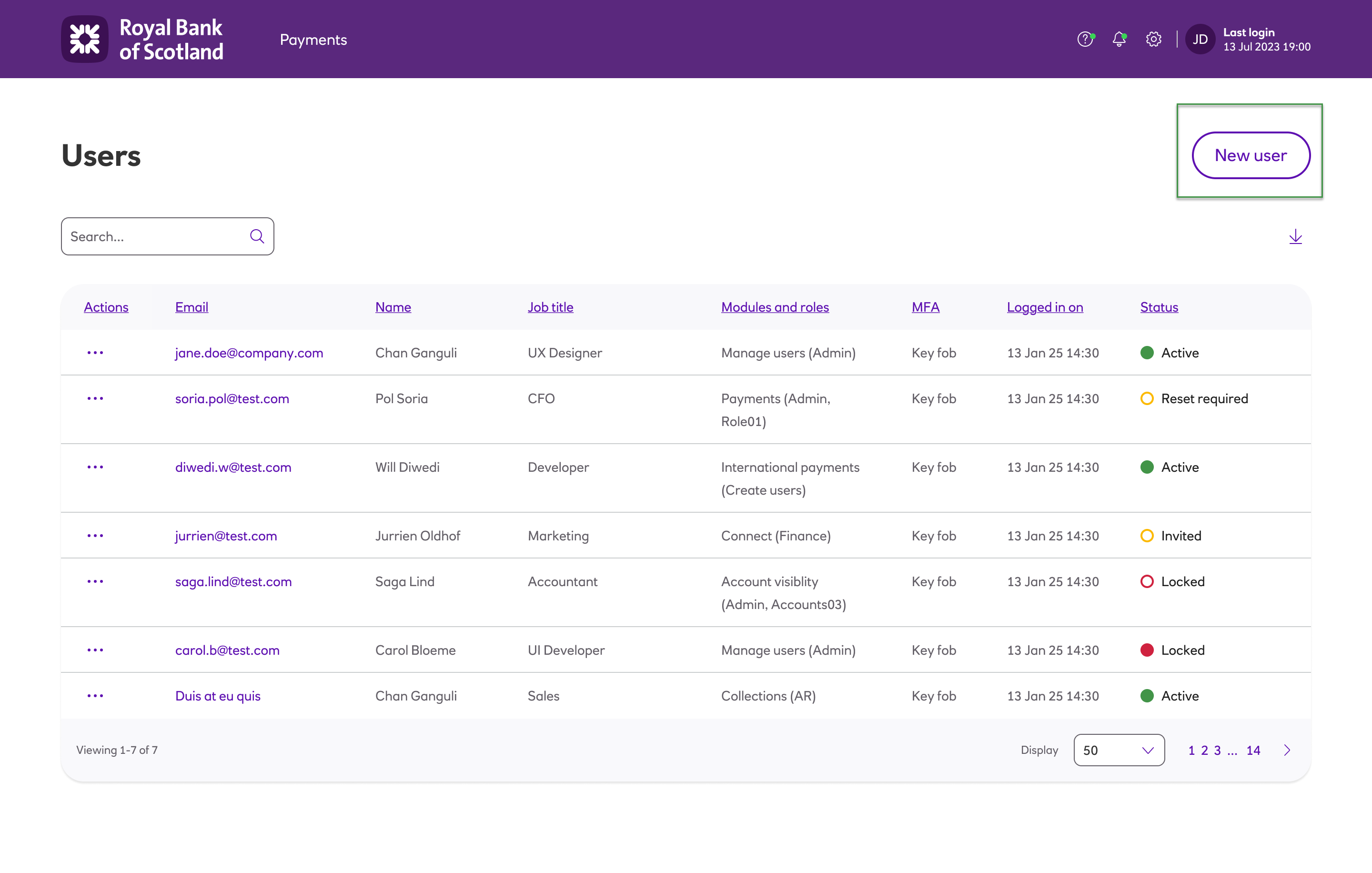- Navigate to the Users screen and click New user (in the top right-hand corner).