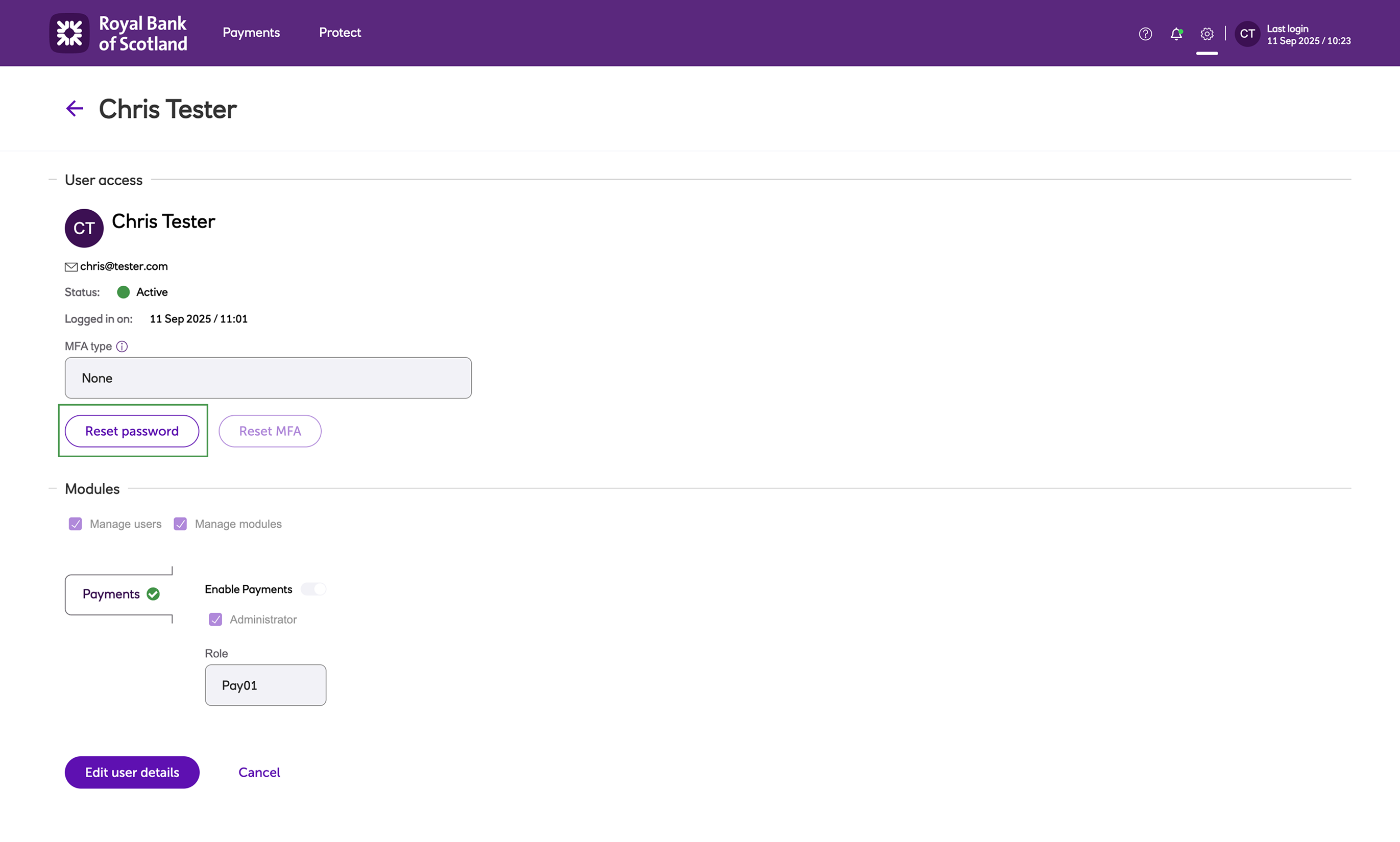 There are now three ways of resetting a user's password. In all cases, a reset email will be sent to the user and instructions are provided on-screen from this point.