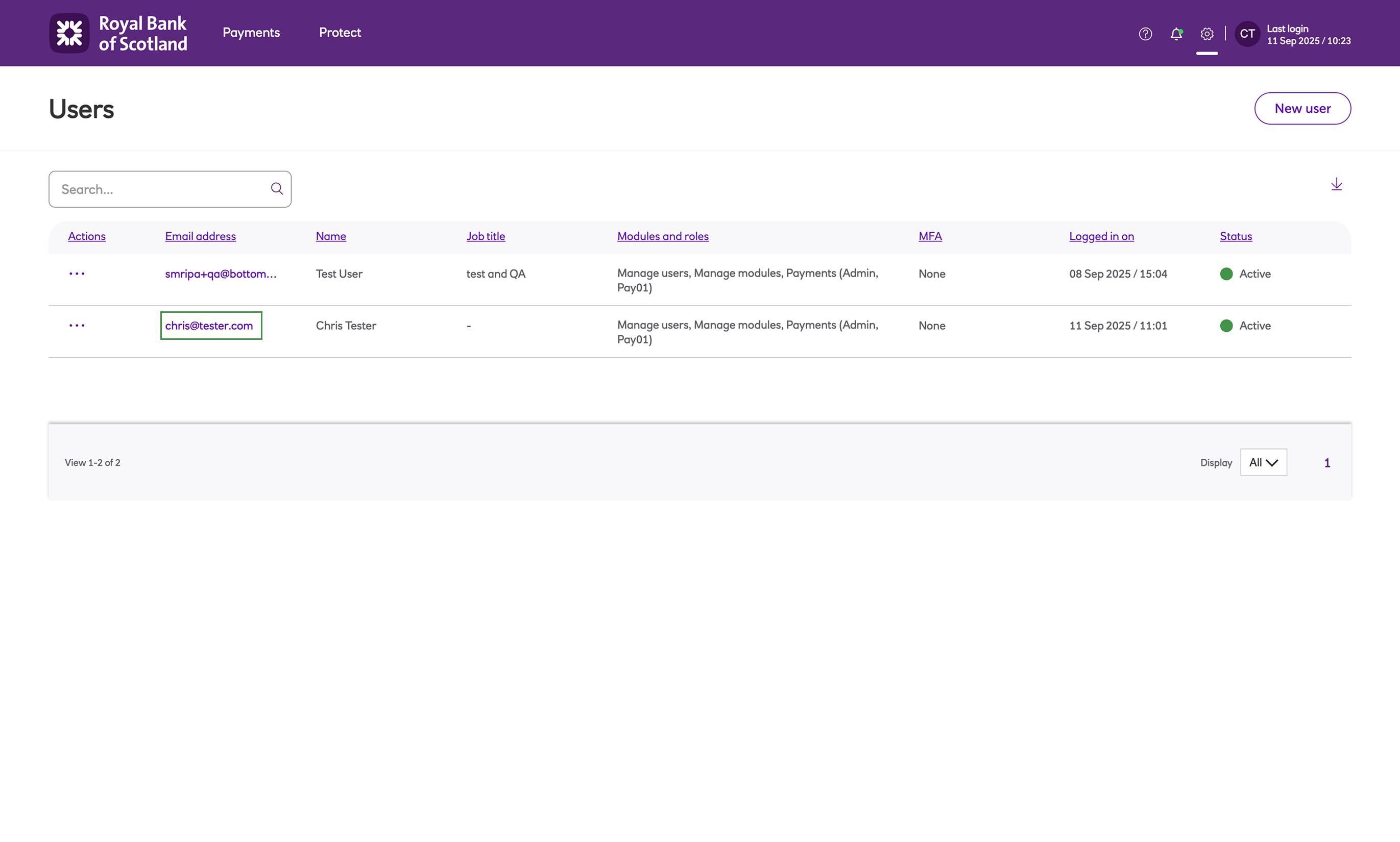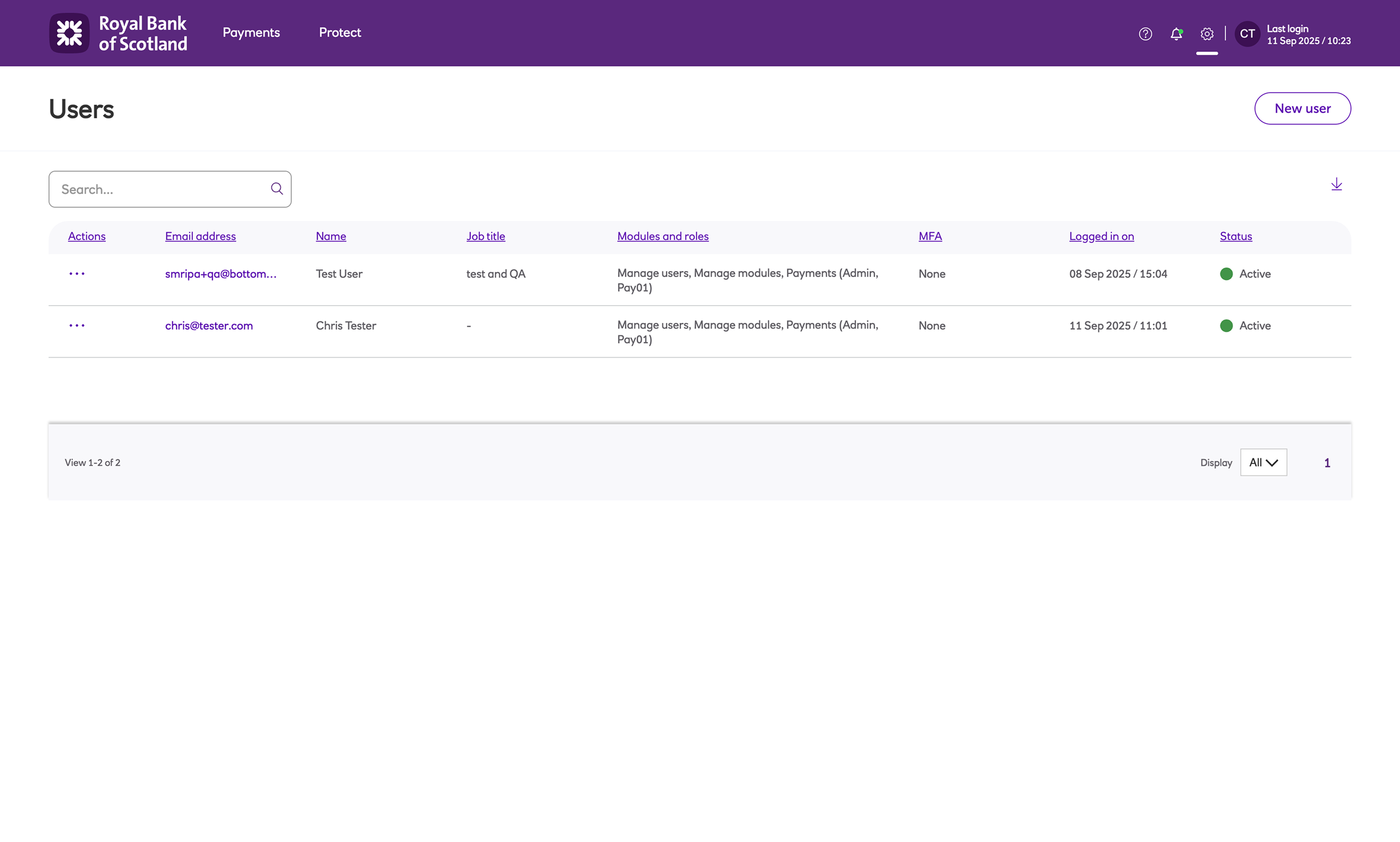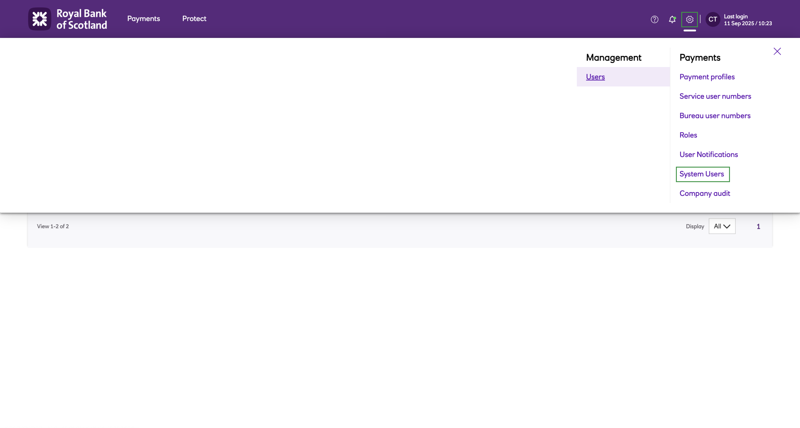 Dual admin will continue to work as before for updates to payment roles, payment profiles and system users. Non-system users will now be managed from the Management menu (as described above).