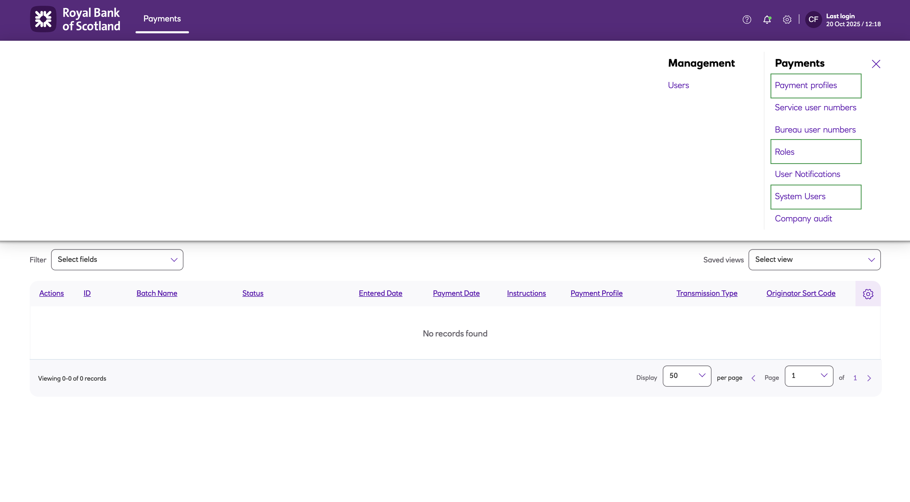 This section contains details for managing users from the Management menu. For system users (accessible from the Payments menu), see the section below.