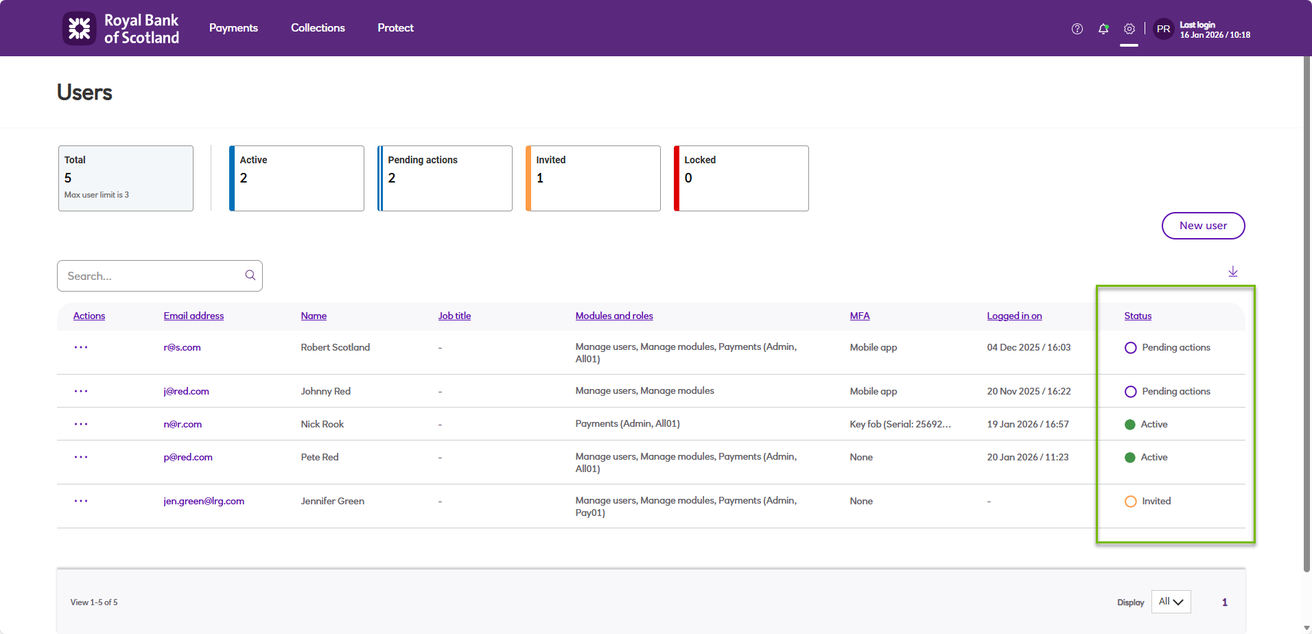 Locked | • Temporarily locked - user has incorrectly entered their password or one-time passcode 5 times, and is then in a locked state for 20 minutes. |